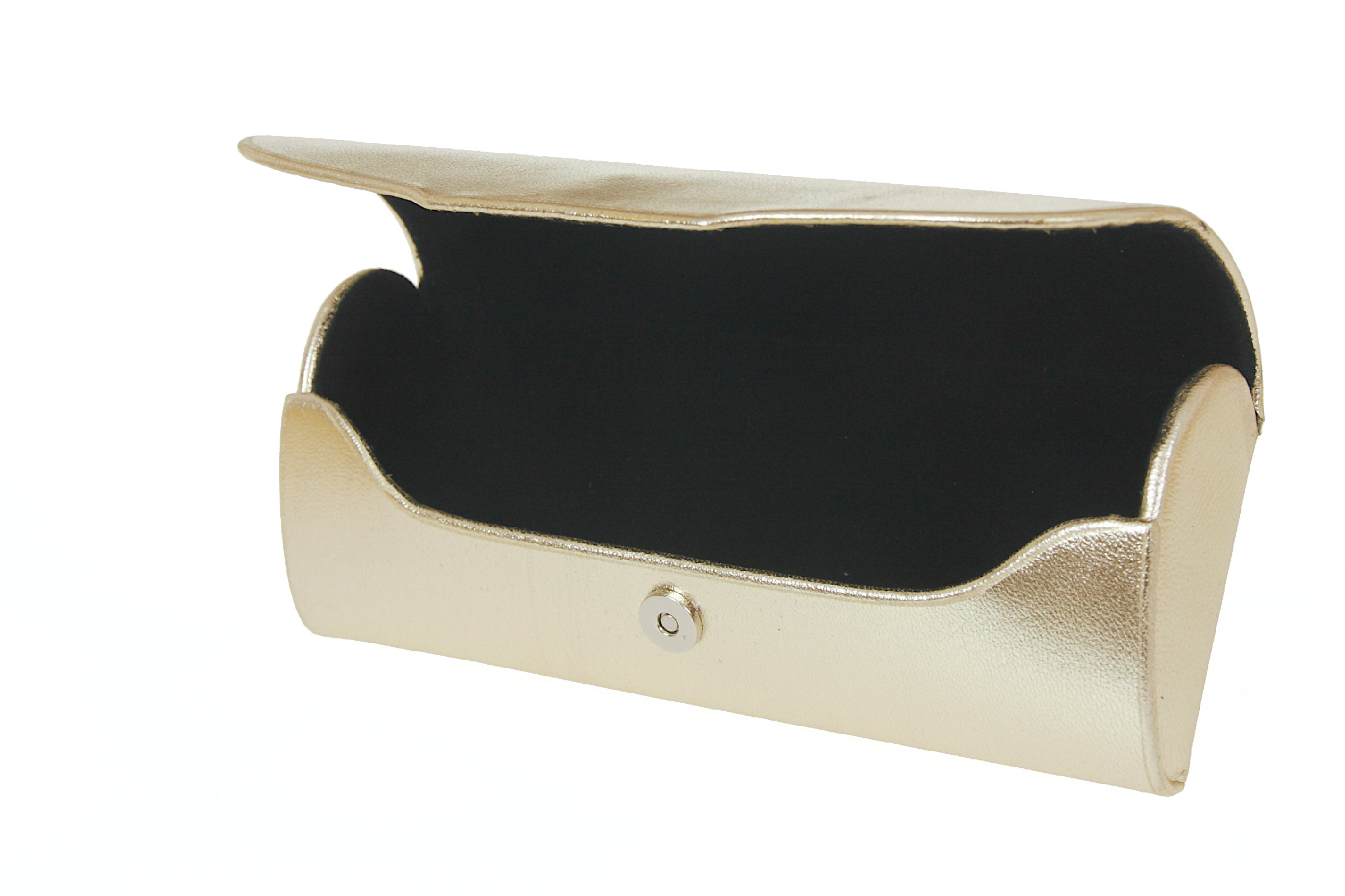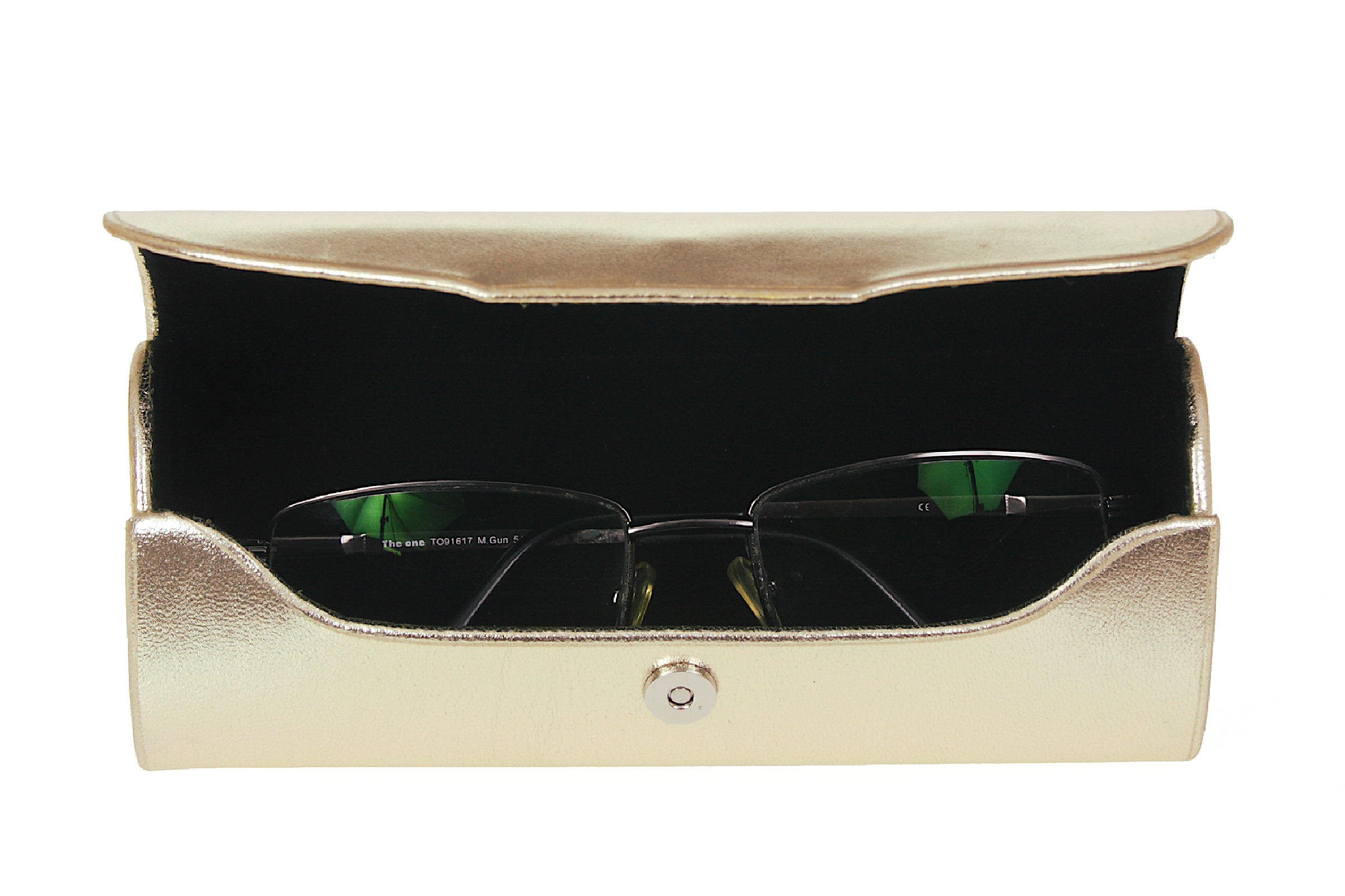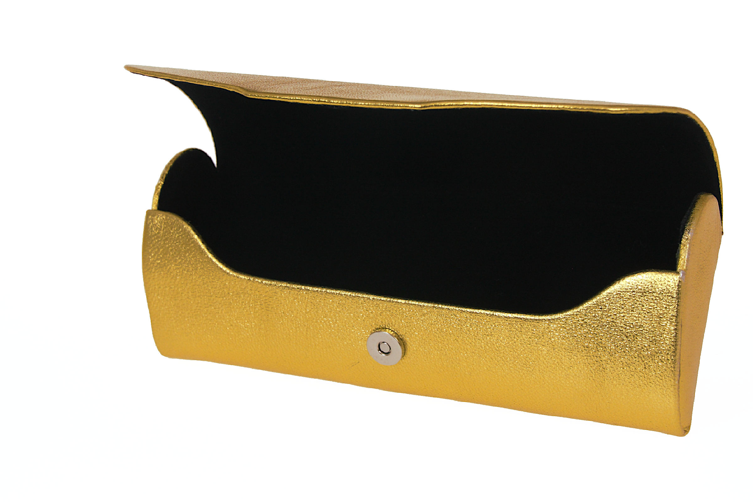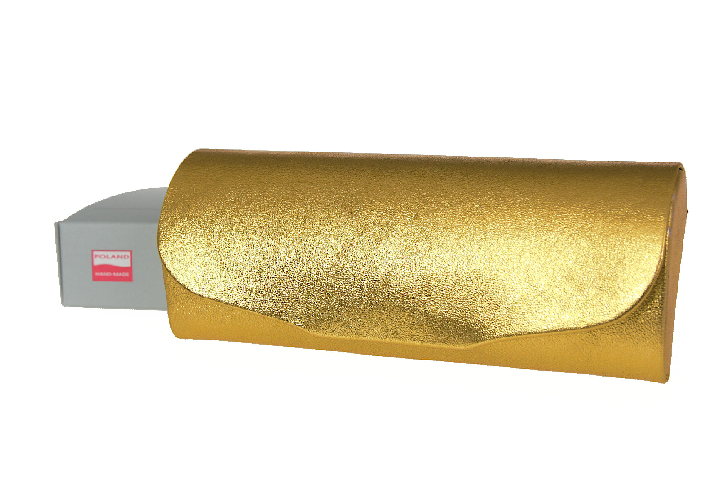 Futerał na większe okulary wykonany z naturalnej, szlachetnej skóry z metalicznym wykończeniem. Usztywniony korpus zamykany na magnesowy zamek, wnętrze wyłożone aksamitnym, miękkim materiałem - doskonała ochrona okularów.