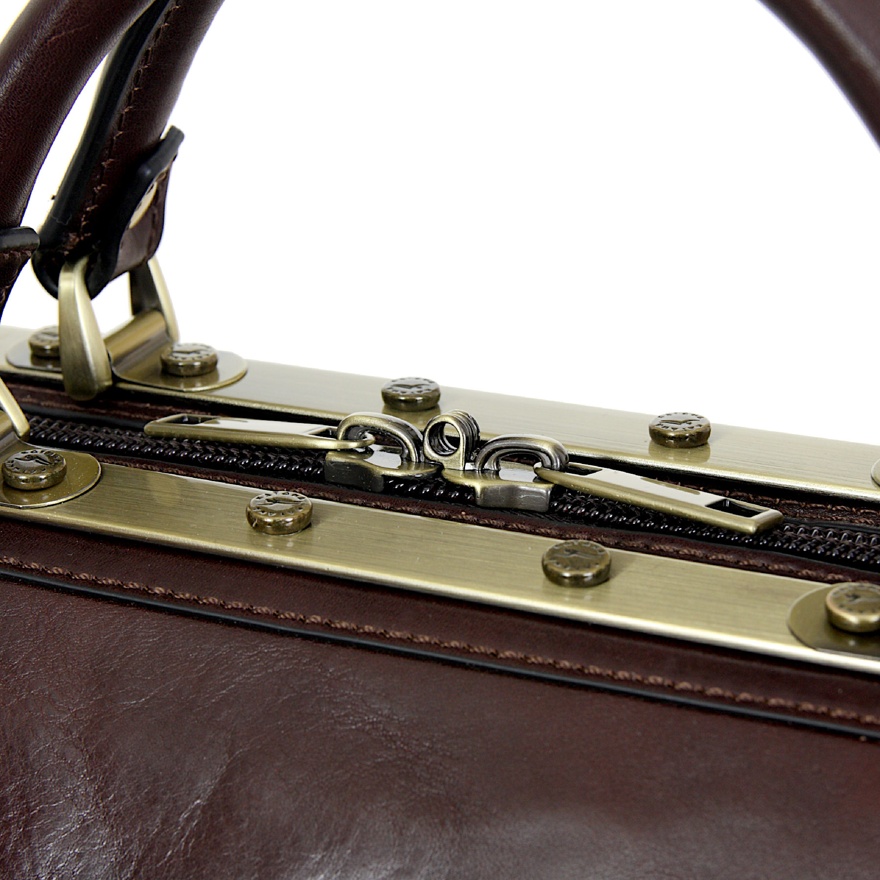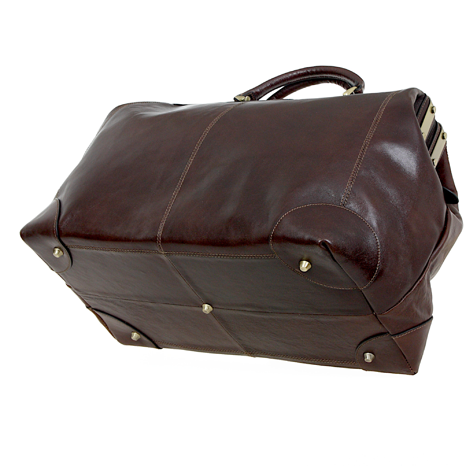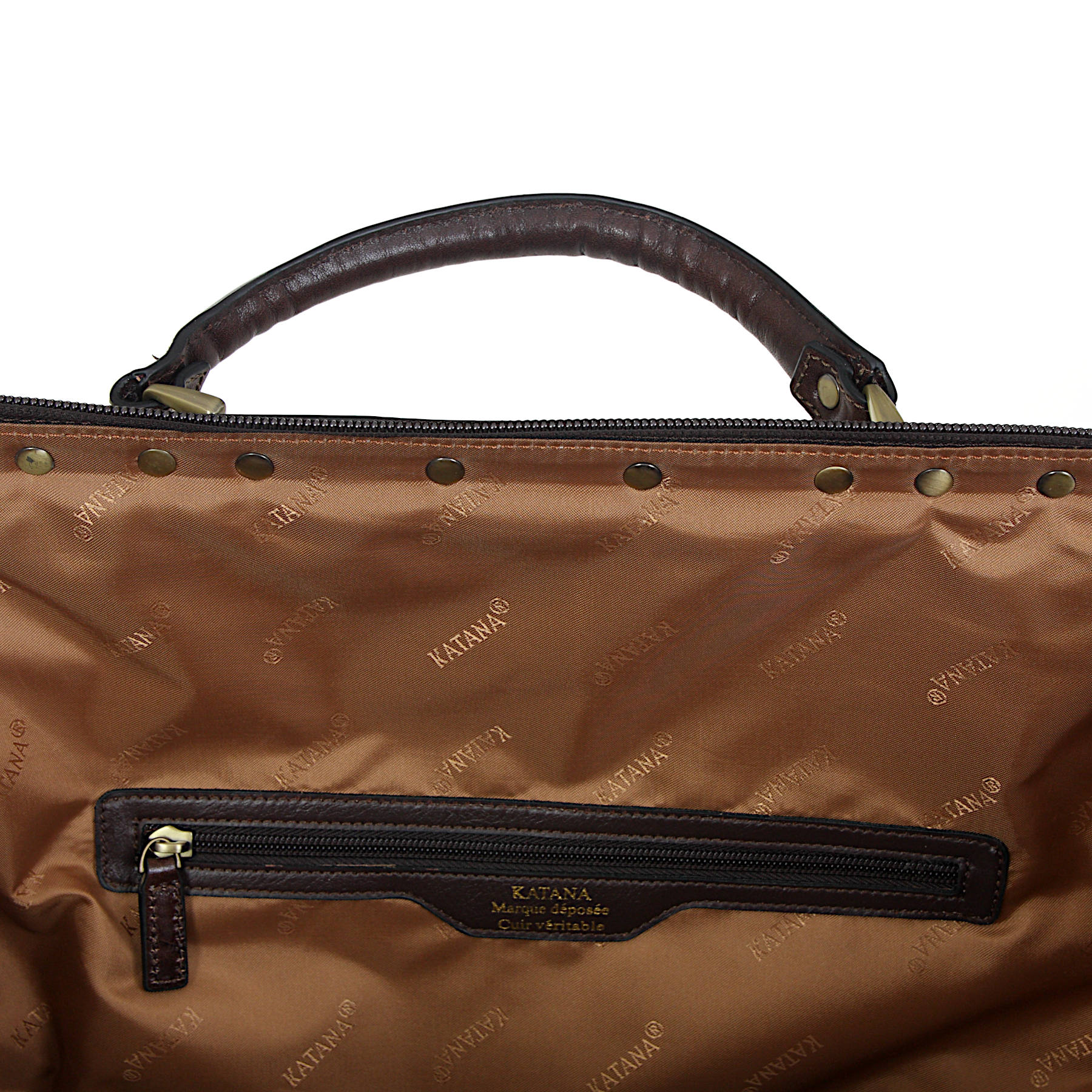 Środek wykończony ekskluzywną, żakardową podszewką firmy KATANA, posiada boczną kieszeń zamykaną suwakiem. Solidnym, grubym zamkiem suwakowym zamykana jest przestrzeń główna kufra a brzegi usztywniono stalową ramką, co stworzyło wygodny dostęp do przestronnego wnętrza. Skórzane, miękkie rączki mocowane stalowymi okuciami zapewniają wytrzymałość przy większych obciążeniach. Metalowe stopki zabezpieczają dno kufra przed uszkodzeniami i zabrudzeniem.