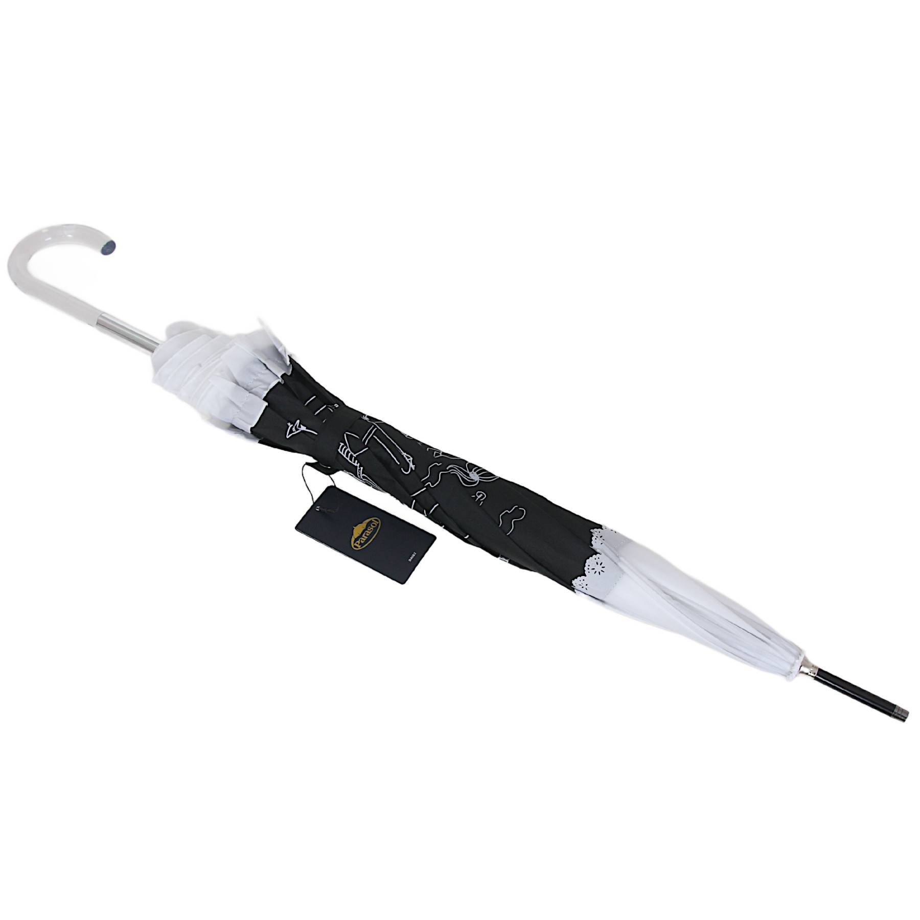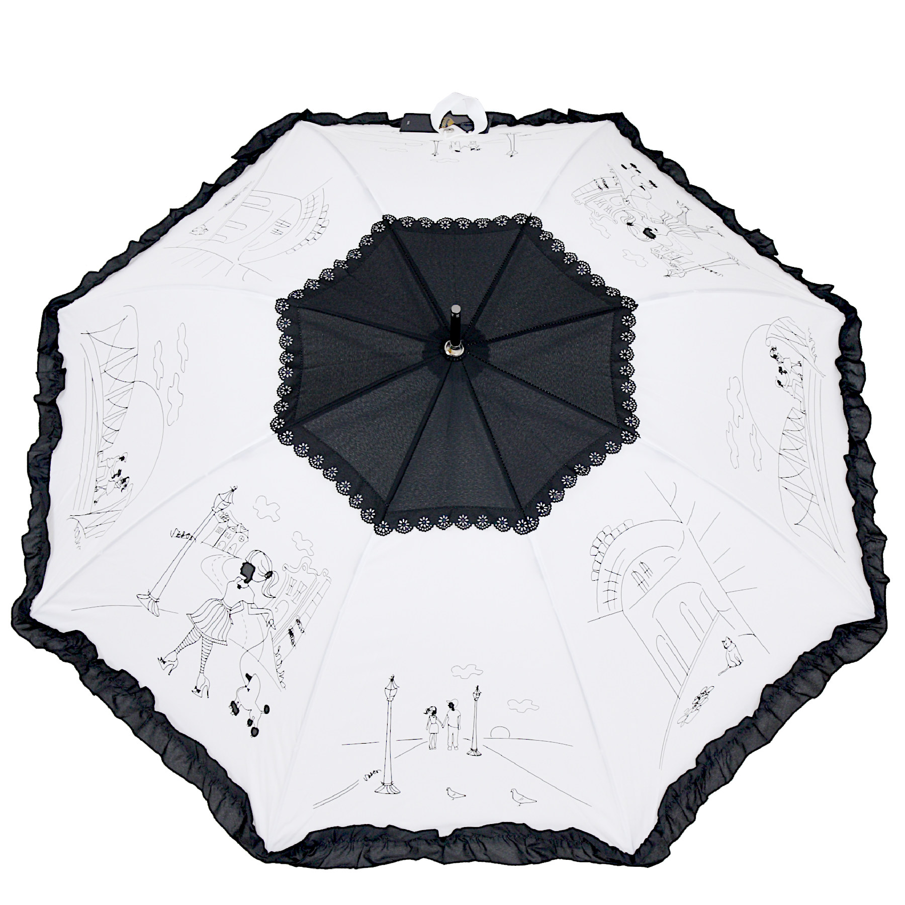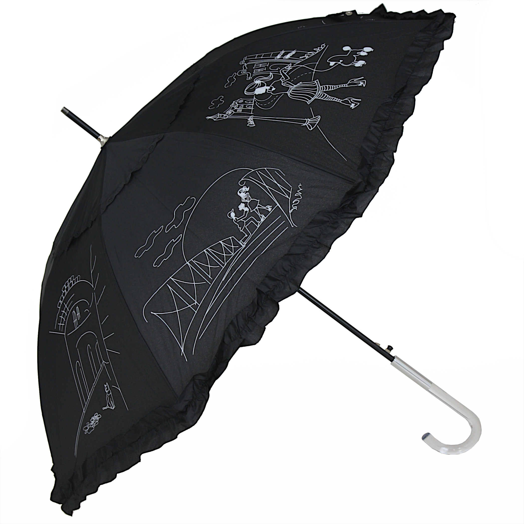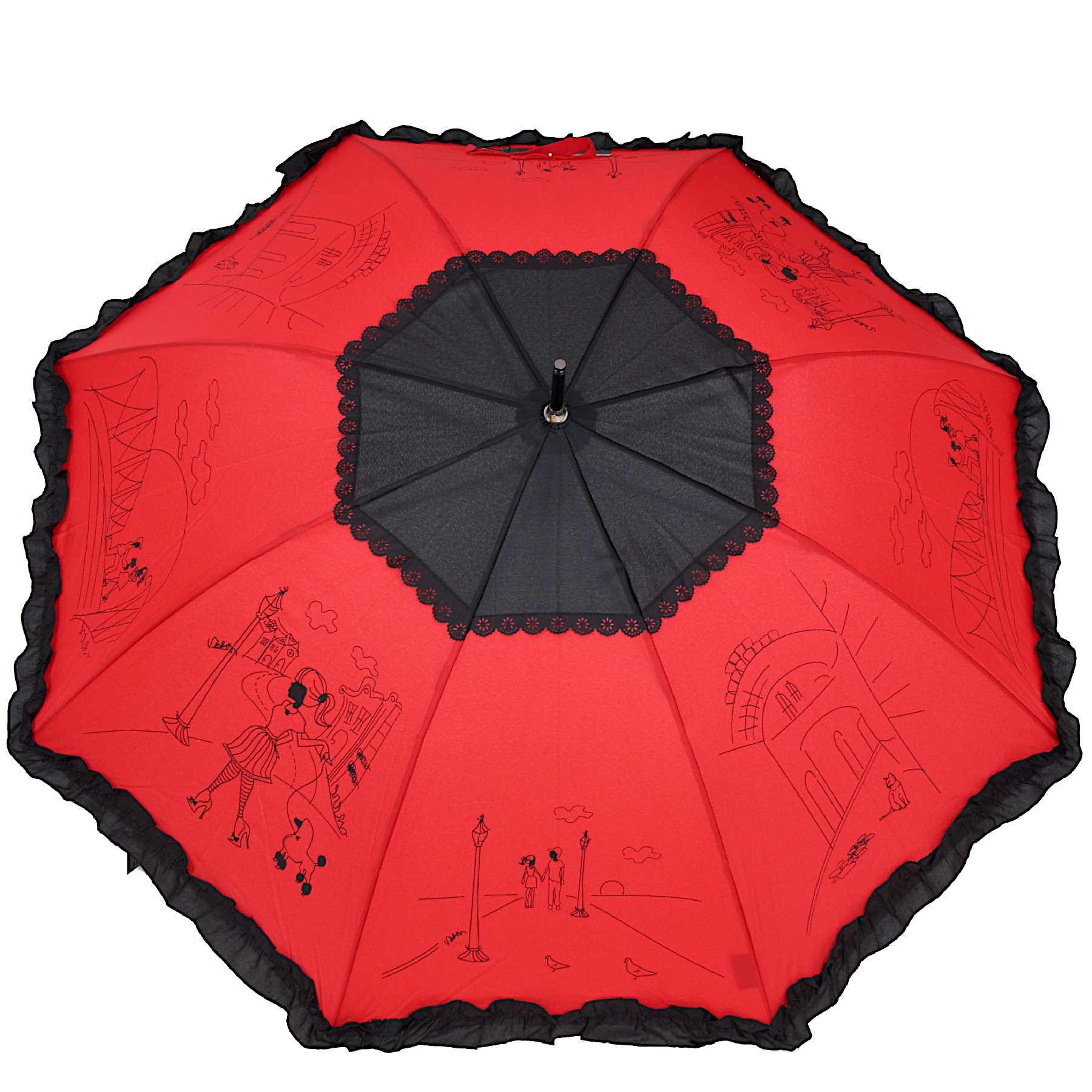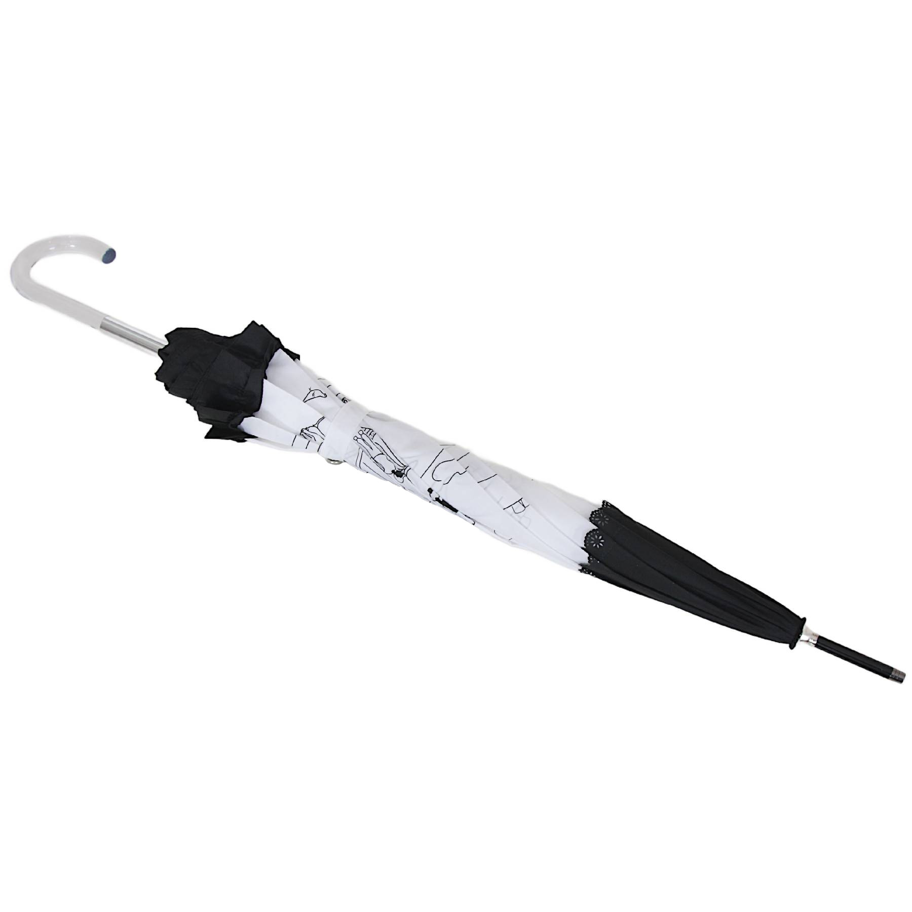 Zjawiskowy parasol damski z falbanką. Jednosekcyjny automat o długości 85 cm. Stelaż wykonany z włókien szklanych oraz wysokiej jakości stali.