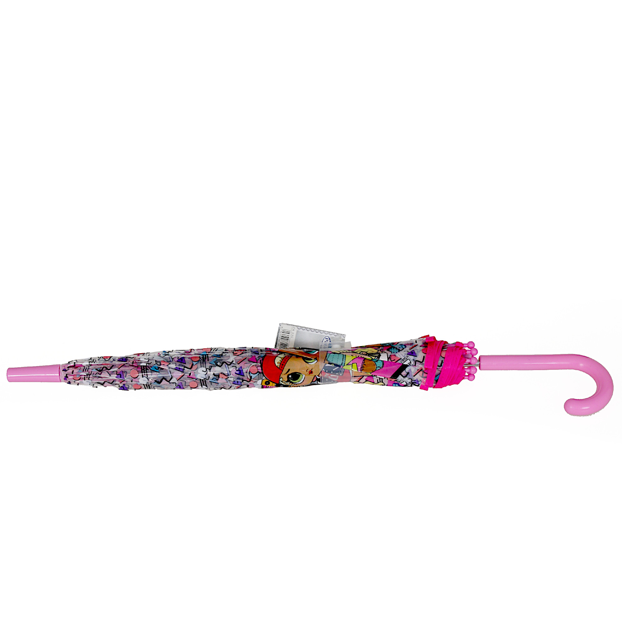 Parasolka dziecięca z postaciami L.O.L. SURPRISE. Automatycznie otwierana. Głęboka przeźroczysta czasza wykonana z mocnej, grubej ale miękkiej folii. Wytrzymały stelaż z tworzywa sztucznego i stali sprężystej. Bezpieczne, pogrubione końcówki stelaża. Rączka plastikowa zapewnia wygodny chwyt dłonią.