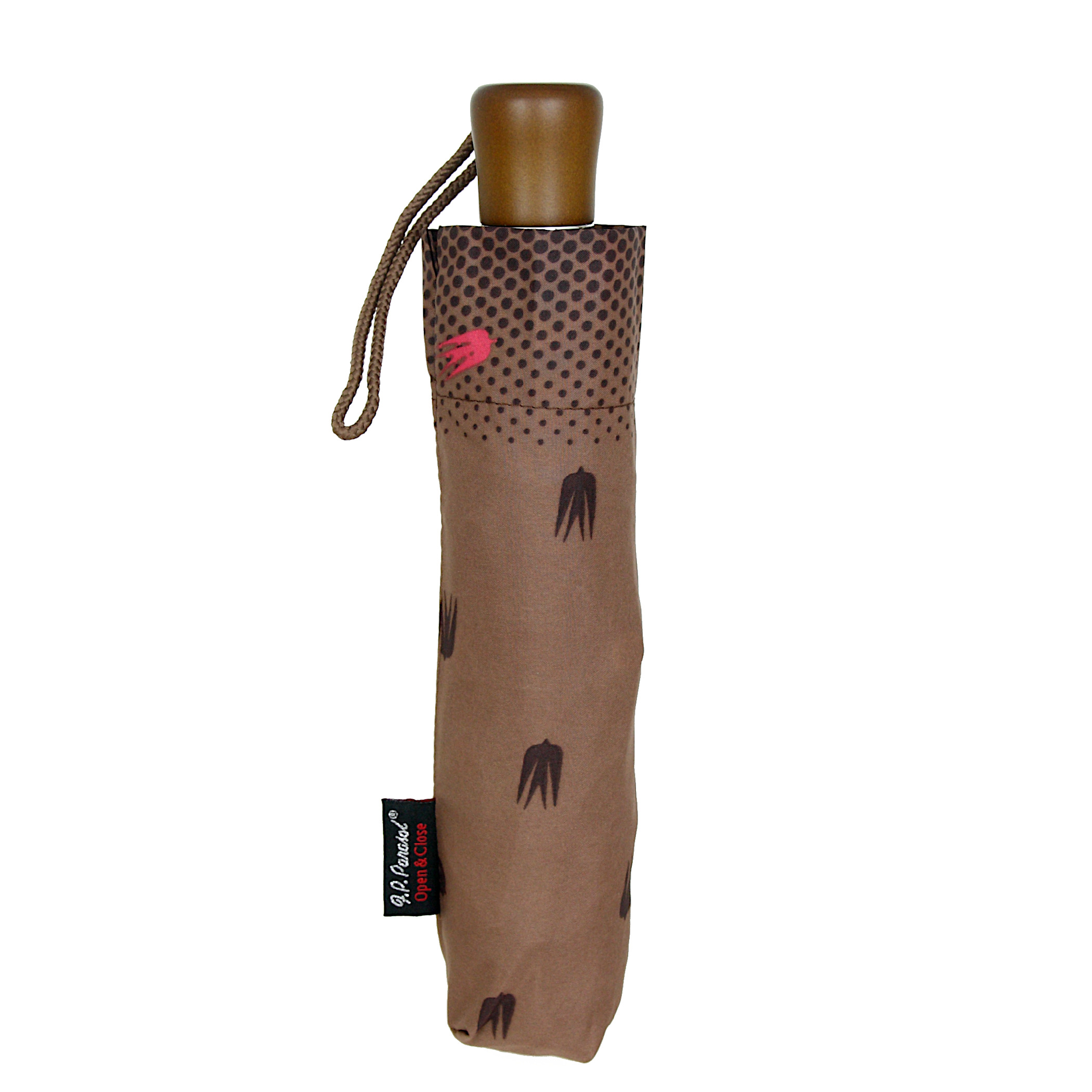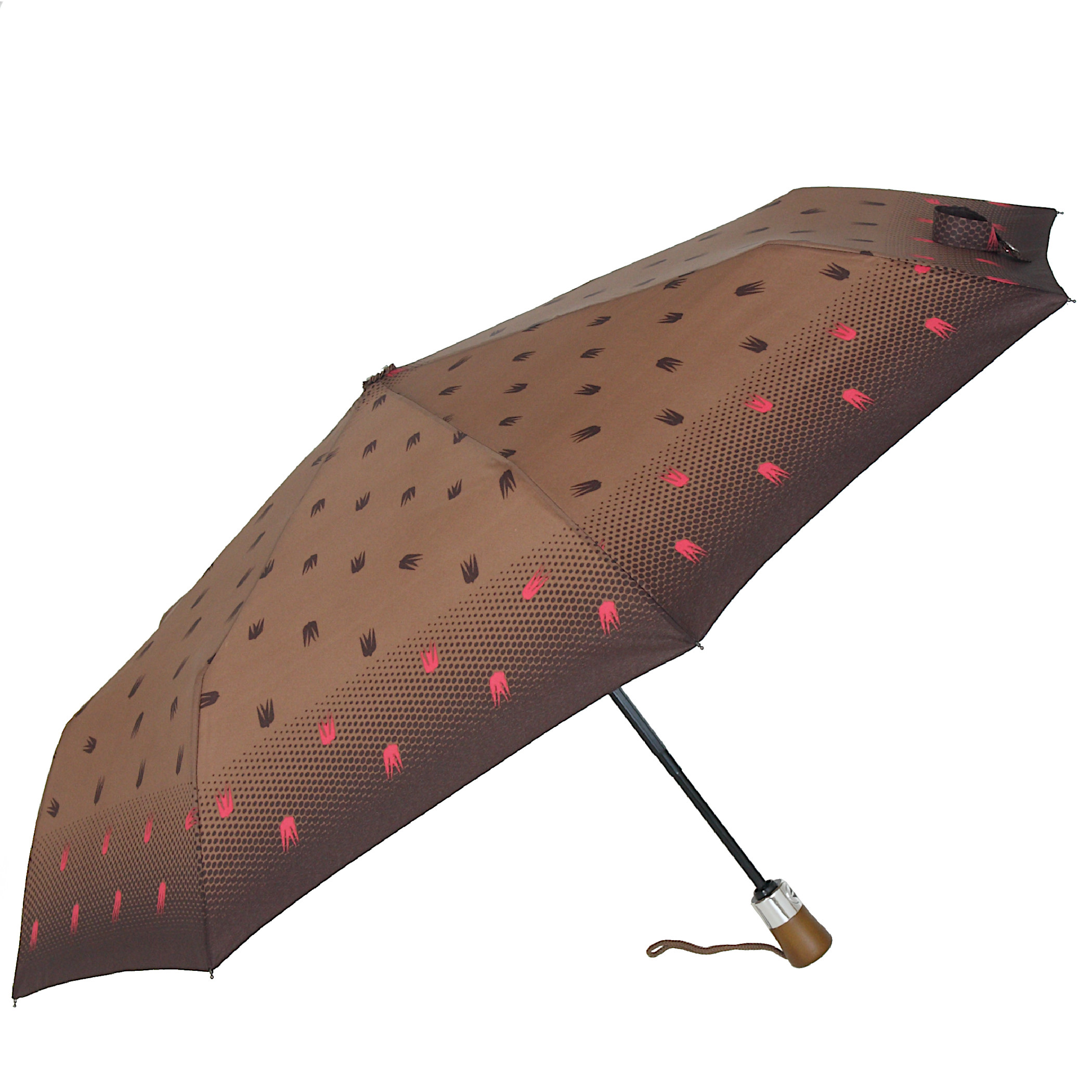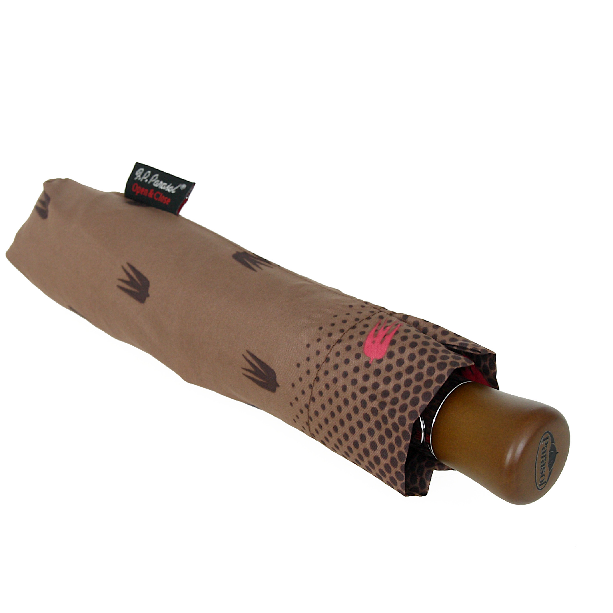 Parasolka damska, trzysekcyjny, pełny automat. Otwieranie i zamykanie automatyczne. Stelaż - lekka i bardzo mocna czasza wykonana z aluminium, włókien szklanych i stali sprężynowej wysokiej próby. Rurka stalowa, teleskopowa. Rączka drewniana. Wykonanie wiatroodporne, czyli ewentualne przegięcie czaszy nie stanowi żadnego problemu, wystarczy sprowadzić ją na swoje miejsce. Oznacza to, że przez długi czas będziesz zadowoloną użytkowniczką tego parasola!