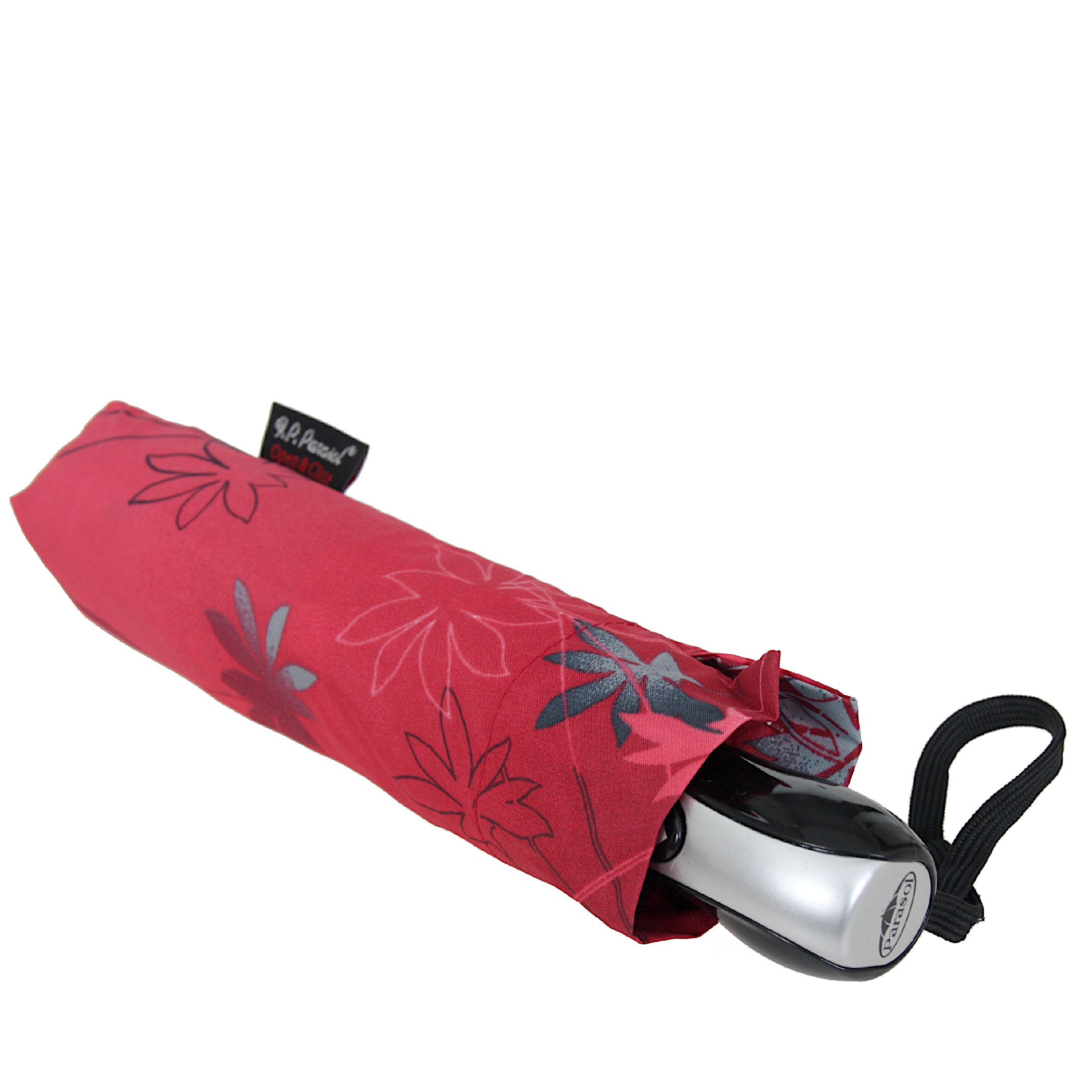 Parasolka damska, trzysekcyjny, pełny automat. Otwieranie i zamykanie automatyczne. Stelaż - lekka i bardzo mocna czasza wykonana z aluminium, włókien szklanych i stali sprężynowej wysokiej próby. Rurka stalowa, teleskopowa. Rączka plastikowa z paskiem. Wykonanie wiatroodporne, czyli ewentualne przegięcie czaszy nie stanowi żadnego problemu, wystarczy sprowadzić ją na swoje miejsce. Oznacza to, że przez długi czas będziesz zadowoloną użytkowniczką tego parasola!
