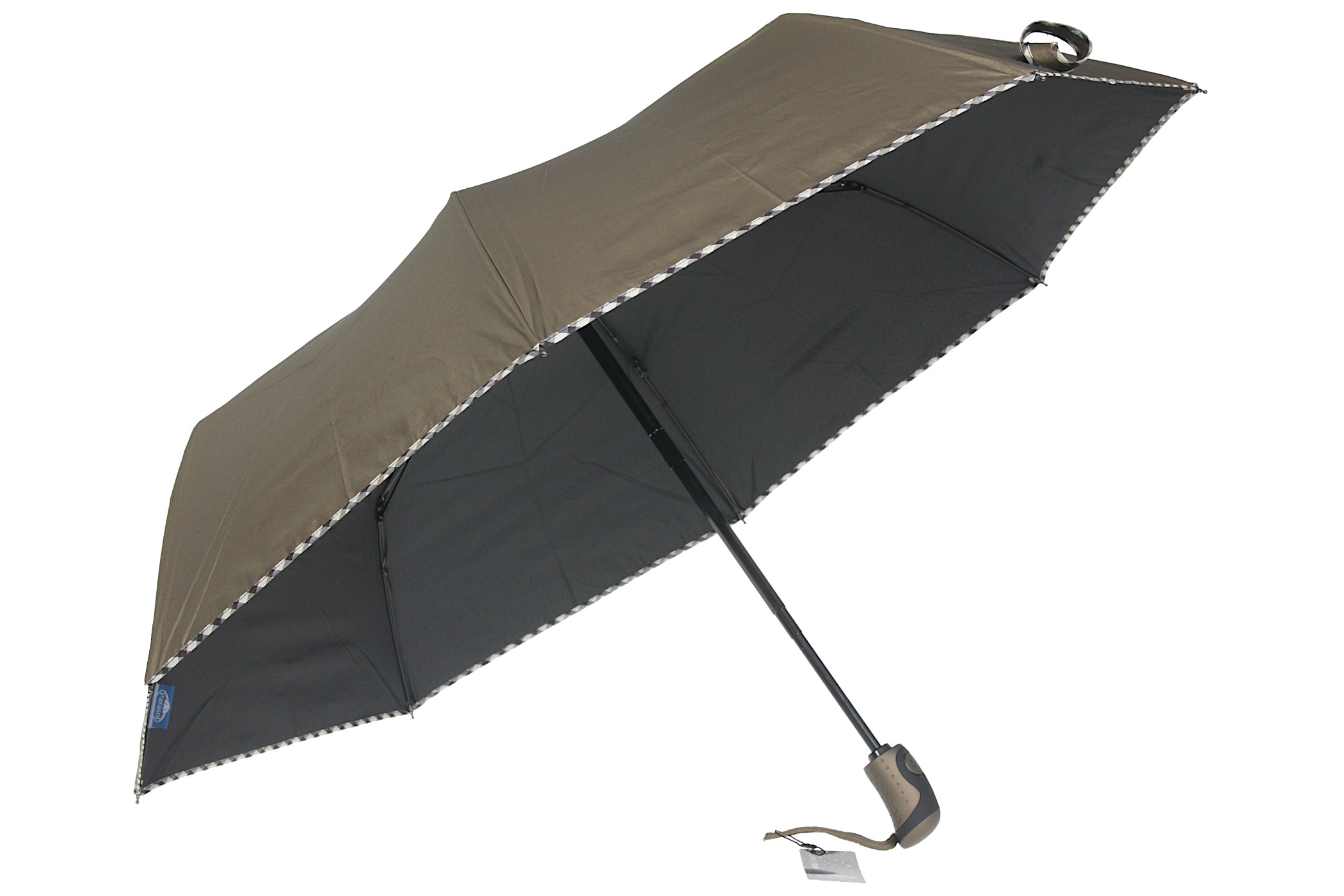 Otwieranie i zamykanie automatyczne. Stelaż to lekka i bardzo mocna czasza zbudowana z aluminium, włókien szklanych oraz stali sprężystej CARBON STEEL. Stalowa rurka teleskopowa, rączka plastikowa, metalizowana w kolorze poszycia. Wysokiej jakości poszycie poliester Pongee powlekane metalizowaną farbą od zewnątrz, czarne od wewnątrz, z lamówką w kratkę.