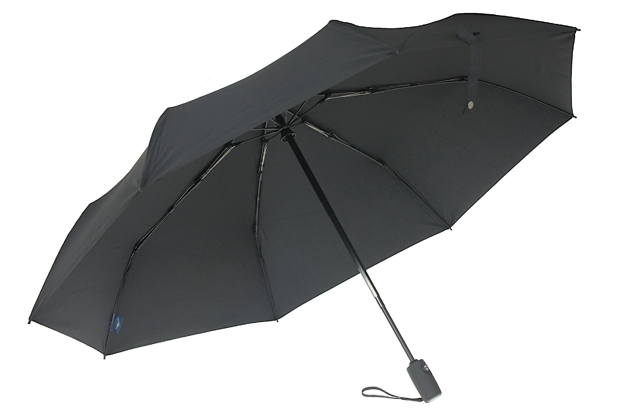 Elegancki parasol męski w kolorze czarnym. Pełny automat czyli rozkładanie i składanie jednym naciśnięciem przycisku. Cecha nie do przecenienia np. przy wsiadaniu do samochodu i w każdej innej sytuacji, gdy mamy jedną rękę zajętą i musimy złożyć parasol.
