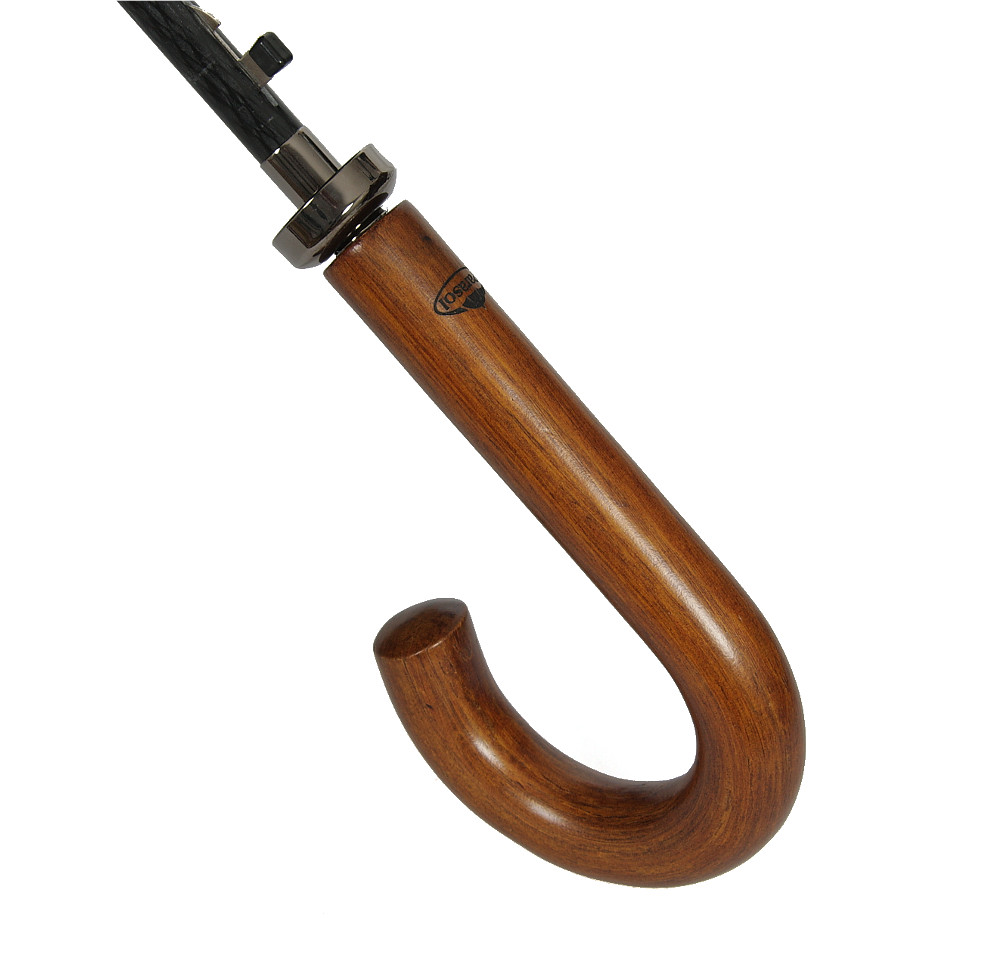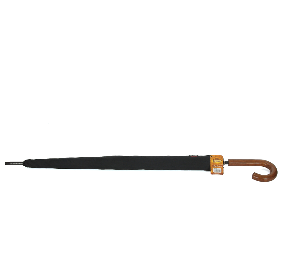 Stelaż i rurka stalowe z elementami z włókien szklanych. Wykonanie wiatroodporne, czyli ewentualne przegięcie czaszy nie stanowi żadnego problemu, wystarczy sprowadzić ją na swoje miejsce. Poszycie z czarnego poliestru. Rączka drewniana, zakrzywiona, daje pewny chwyt nawet przy silnych wiatrach. Wyposażony w pokrowiec.