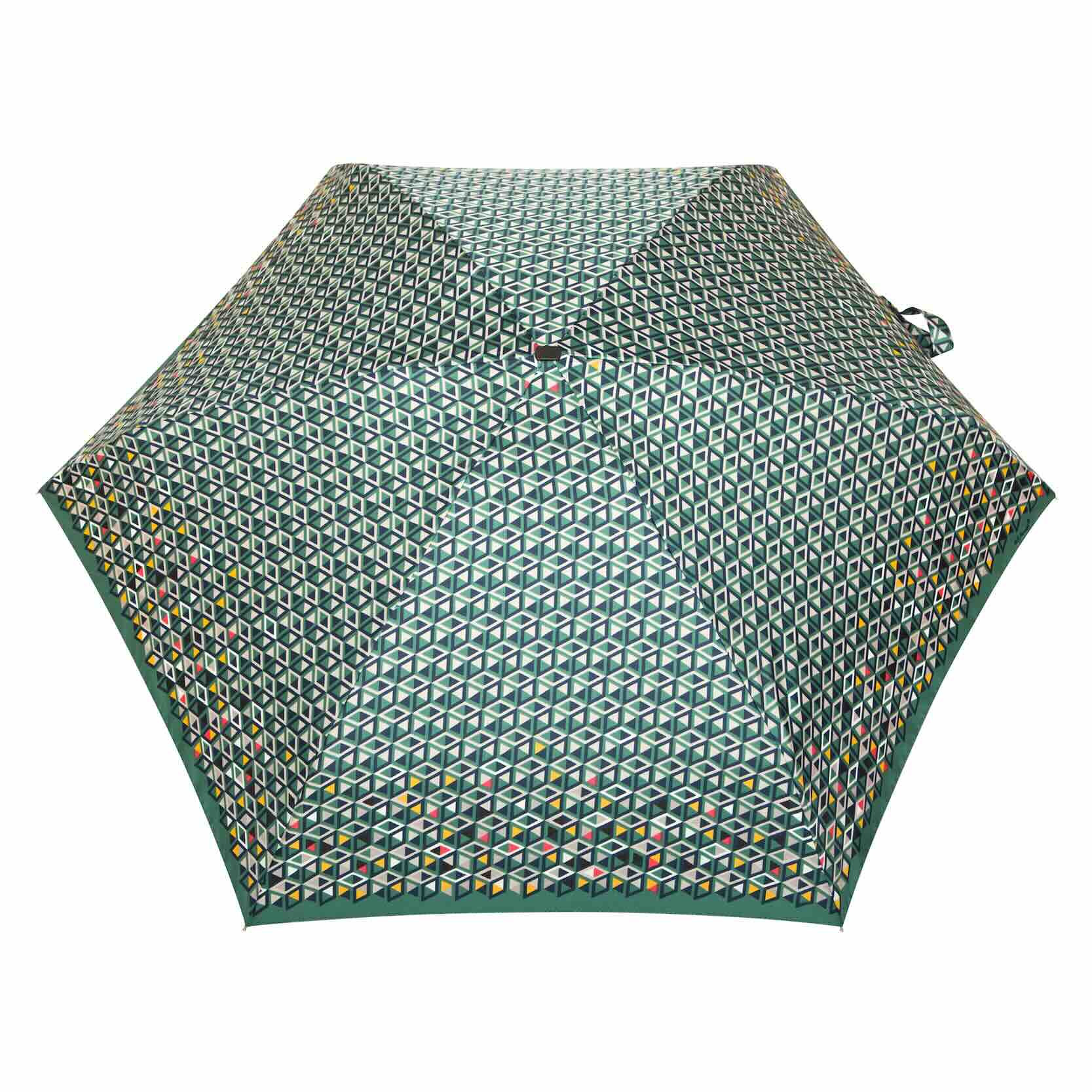 Parasolka damska, płaska Super Mini Kieszonkowafalbany na brązowymkubiki na zielonymkubiki na zielonympszczółki szarepszczółki szare