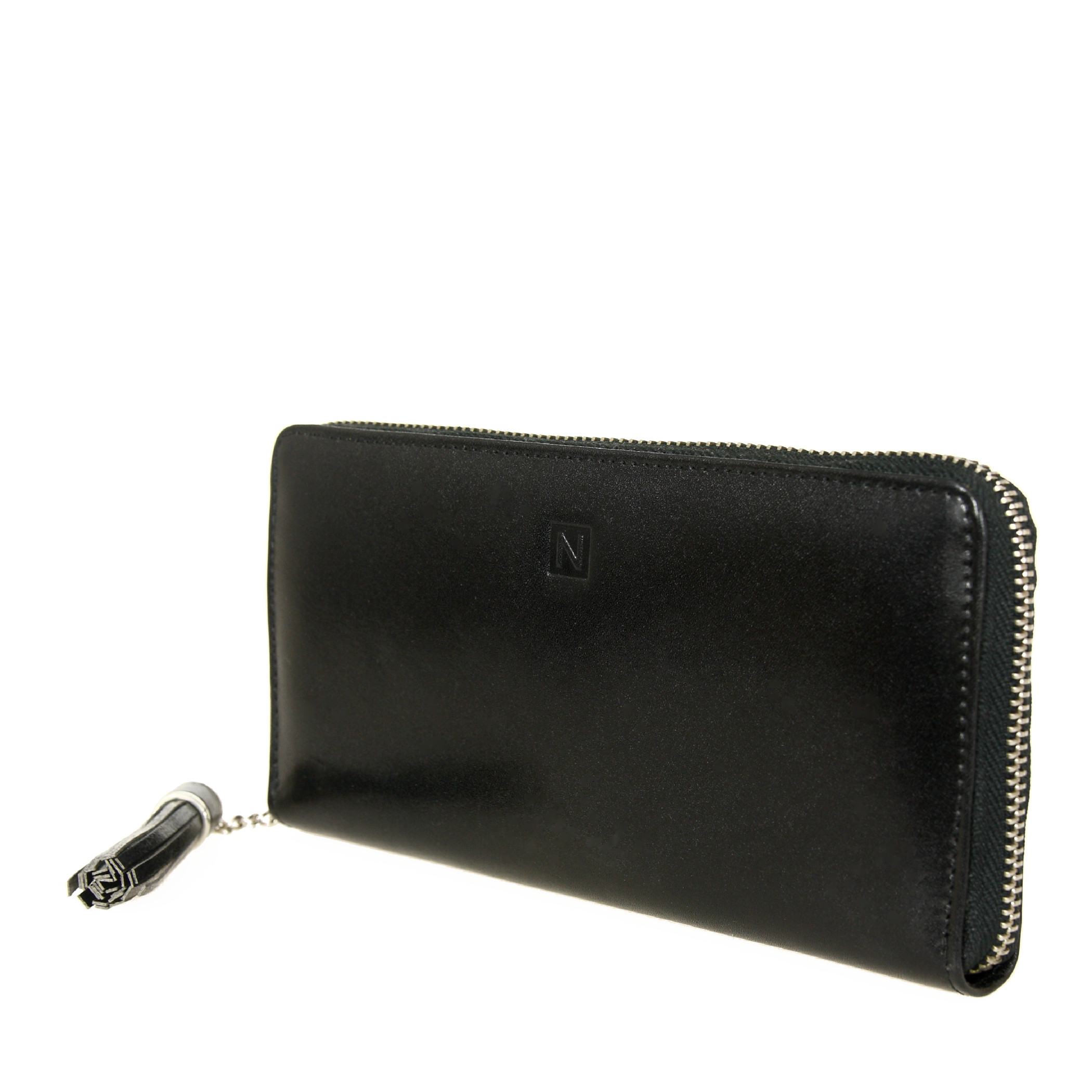 Śliczny i pojemny portfel damski wykonany z naturalnej skóry licowej. Budowa wnętrza to sprawdzone, tradycyjne rozwiązanie. Stwarza ono bardzo dogodny dostęp do przejrzyście posegregowanej zawartości. Są to trzy obszerne kieszenie w układzie harmonijkowym plus czwarta kieszeń zamykana suwakiem - doskonałe miejsce na bilon.