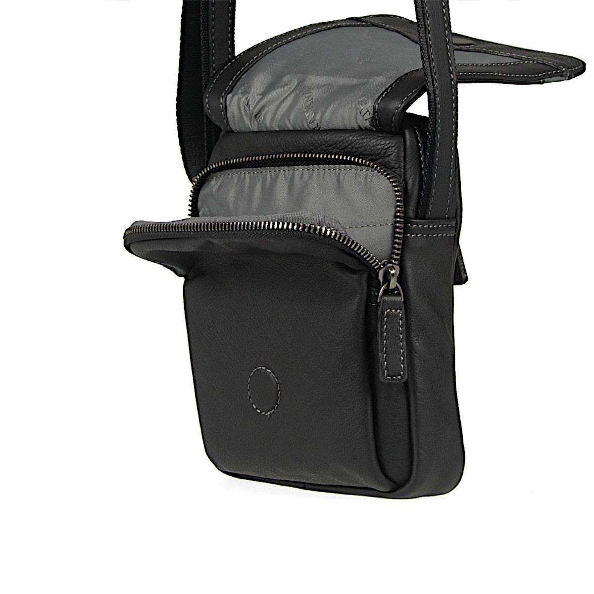 Saszetka do noszenia jak tradycyjna listonoszka. Zamykana dużą klapą na ukryty magnes i dodatkowo każda kieszeń odrębnym zamkiem suwakowym. Dzięki dużej ilości kieszeni i przegród z łatwością utrzymasz porządek w zawartości. Pasek szerokości 2,5 cm wykonany z mocnej taśmy nośnej obszytej skórą, łączy w sobie elegancję i wytrzymałość. Wnętrze wykończone ekskluzywną, żakardową podszewką firmy KATANA.