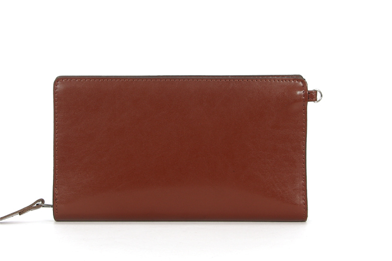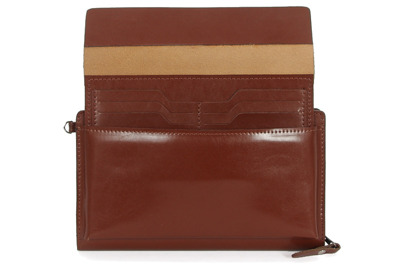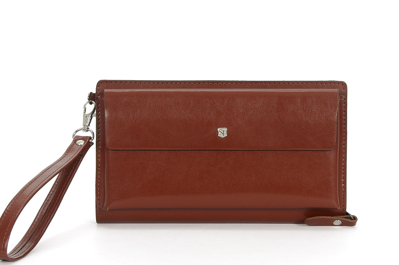 Zbudowana z dwóch odrębnych przestrzeni. Komora główna to dwie kieszenie przedzielone przegrodą w postaci kolejnej kieszeni. Całość zamykana suwakiem. Pod patką zamykaną krytymi magnesami znajduje się druga przestrzeń - wysuwany futerał na karty kredytowe/wizytówki. Nie zapomniano o uchwytach na telefon, długopis itp. Wnętrze wykończone kolorystycznie dobraną podszewką. Wyposażona w odpinaną, skórzaną rączkę ułatwiającą przenoszenie.
