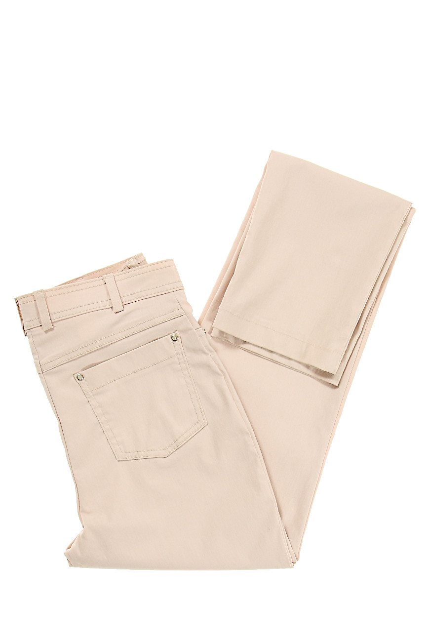 Spodnie długie, proste, idealne na lato. Z przodu zapinane na zamek i jeden guzik, mają tu imitacje dwóch kieszonek. Z tyłu dwie kieszenie naszyte. Przy pasku dysponujemy szlufkami.