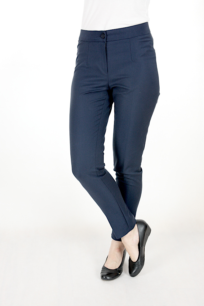 Spodnie długie, eleganckie i ponadczasowe. Lekko zwężane do dołu. Z przodu zapinane na zamek i jeden guzik. Z tyłu mają imitację dwóch kieszonek. Wysokogatunkowa tkanina, z której są uszyte, gwarantuje komfort użytkowania.