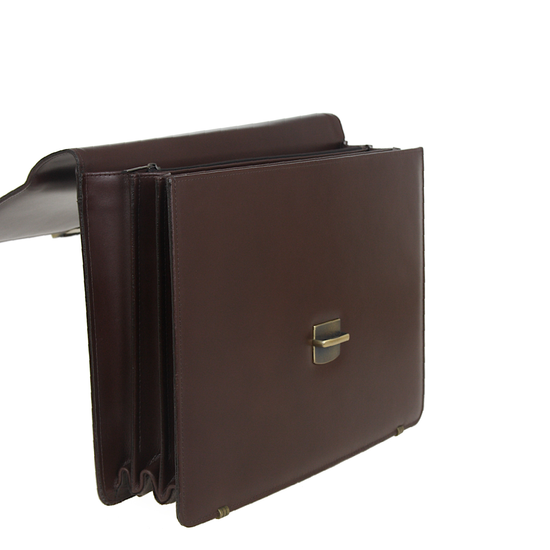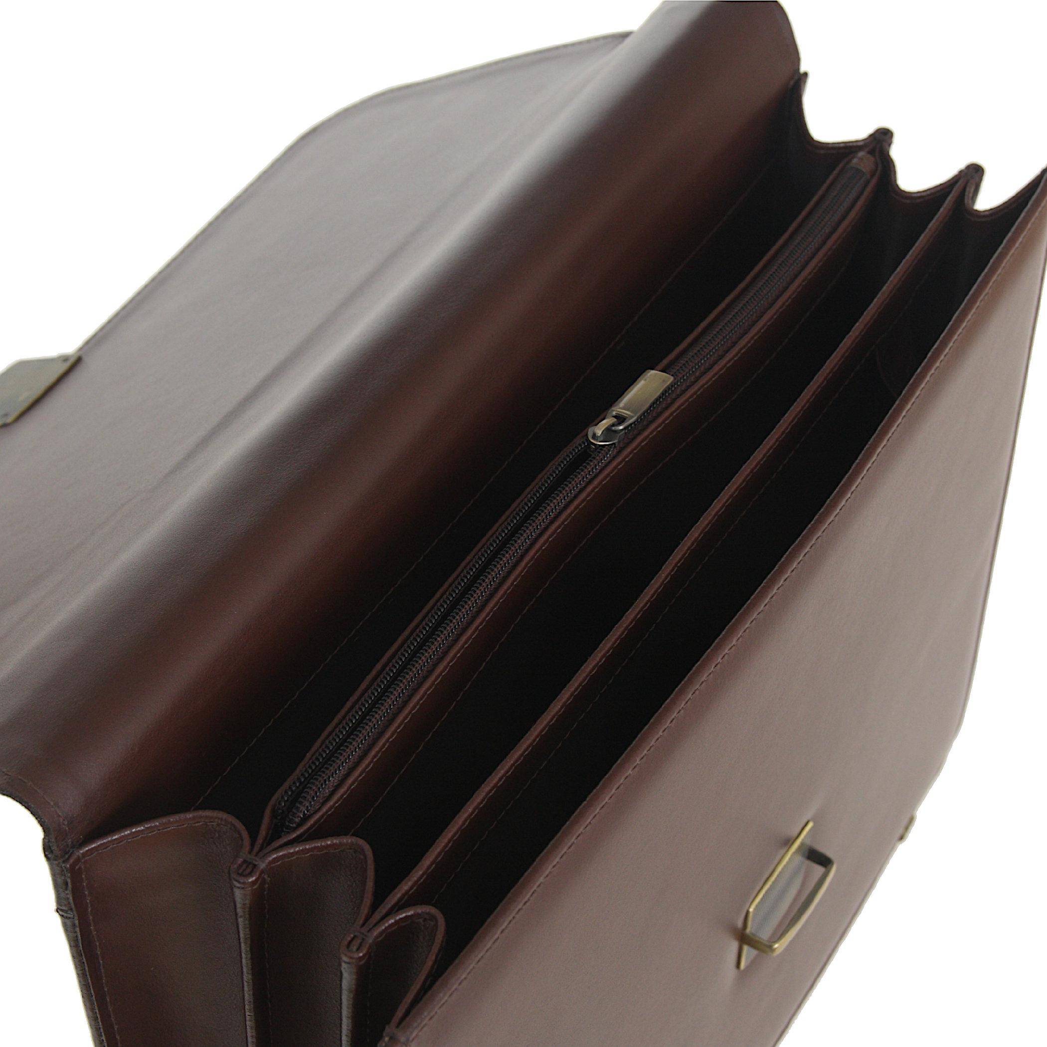 Teczka wykonana z naturalnej, szlachetnej skóry licowej najwyższej jakości w kolorze brązowym. Wewnątrz 4 komory, w tym 1 zamykana zamkiem błyskawicznym. Ponadto dwie kieszonki i uchwyty na długopisy.