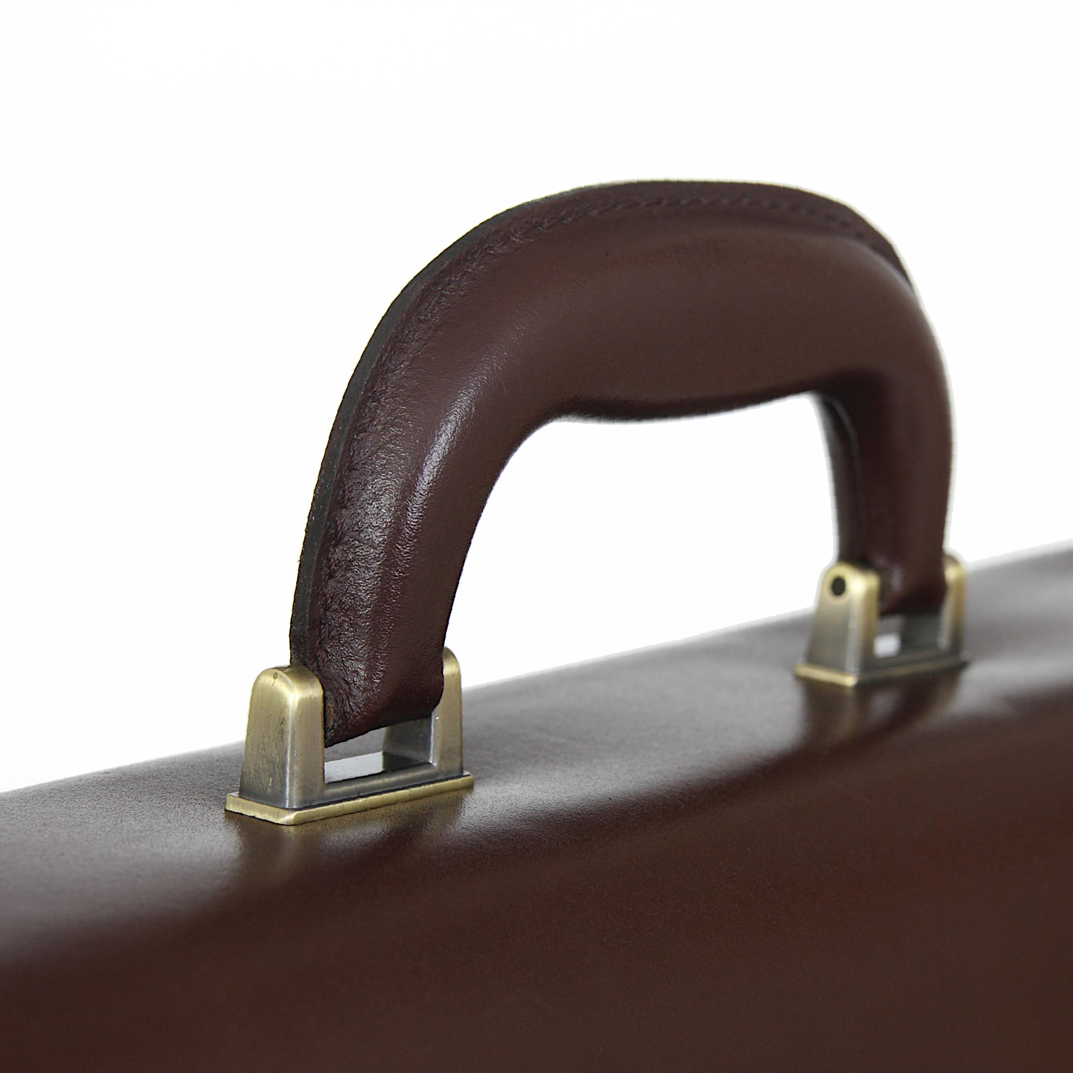 - stalowe okucia mocujące rączkę do grzbietu teczki wzmocnionego stalową listwą
