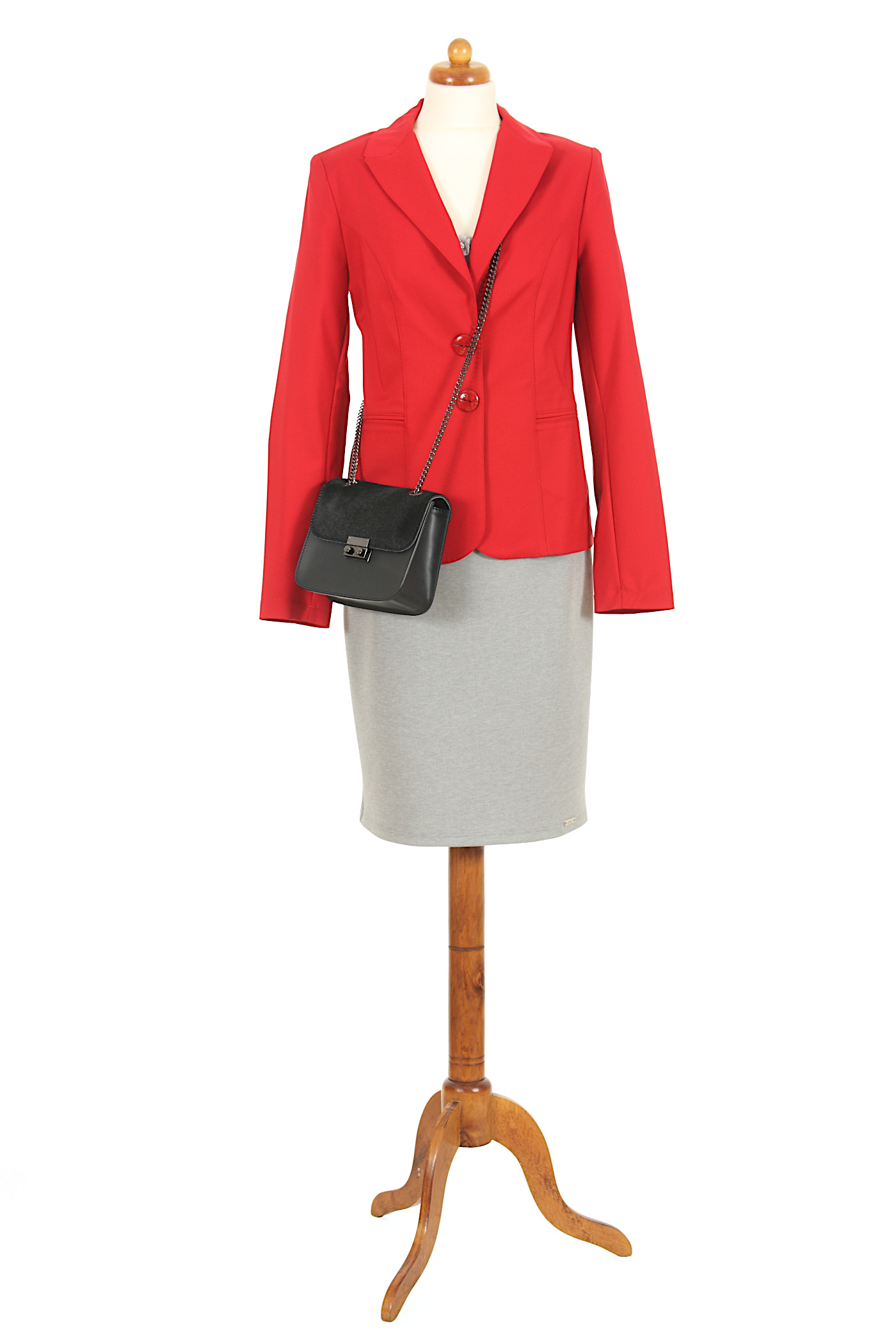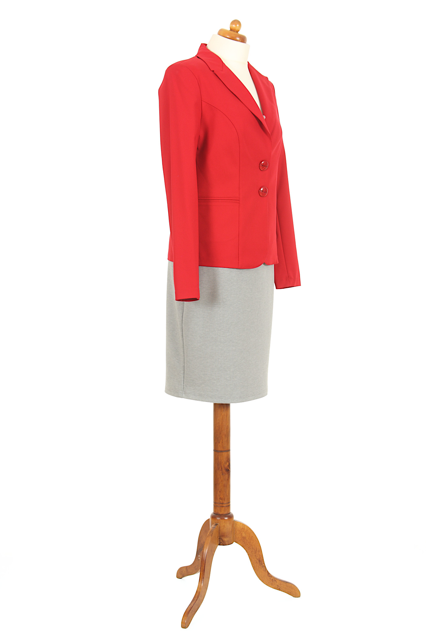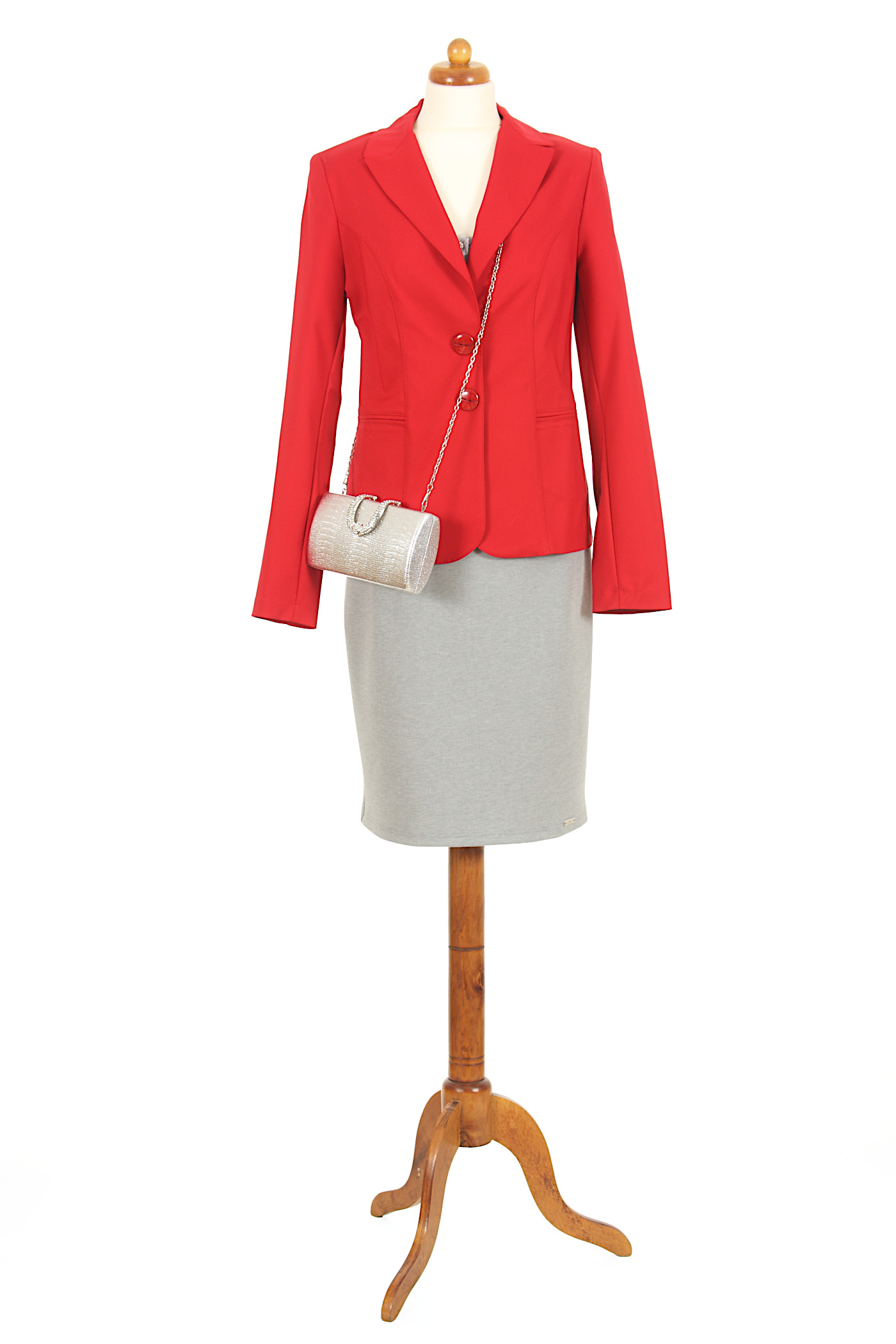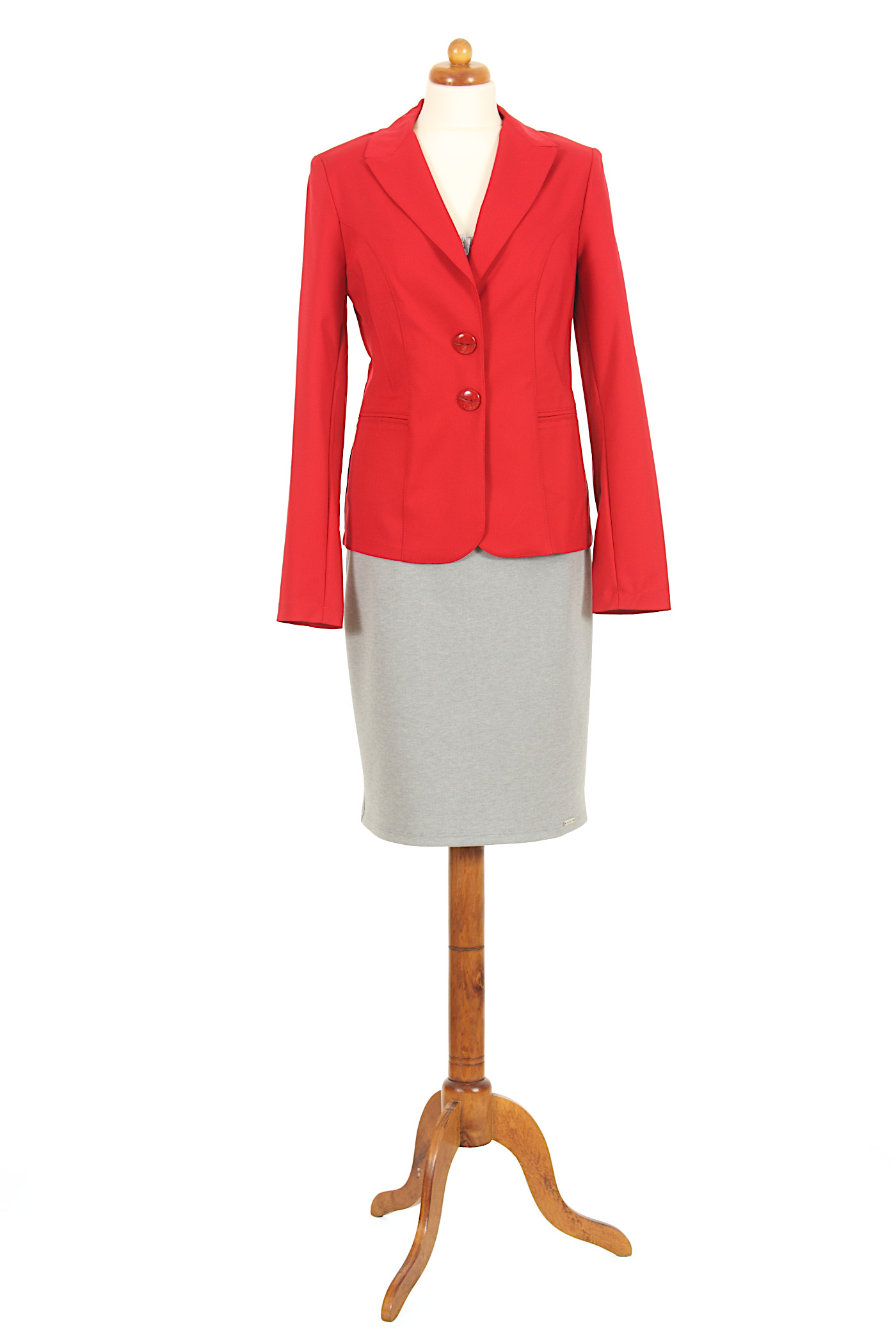 Ten żakiet to idealny strój dla miłośniczek odważnych kreacji i wyrazistych kolorów. Pięknie prezentuje się w zestawieniu z bielą, szarością, czernią czy granatem. Żakiet zapinany na dwa guziki, z przodu ma 2 kieszonki, w ramionach wszyte są poduszki. Klasyczny krój z bocznymi cięciami idealnie dopasowuje się do kobiecej sylwetki. Szyty na podszewce. Zapewnia znakomitą prezentację.